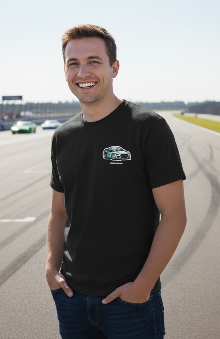 Siente la fuerza del drift con esta polera exclusiva de Seba Orellana: su imponente Mustang al frente y el logo oficial en la espalda. ¡Un clásico del drift chileno en tu outfit!